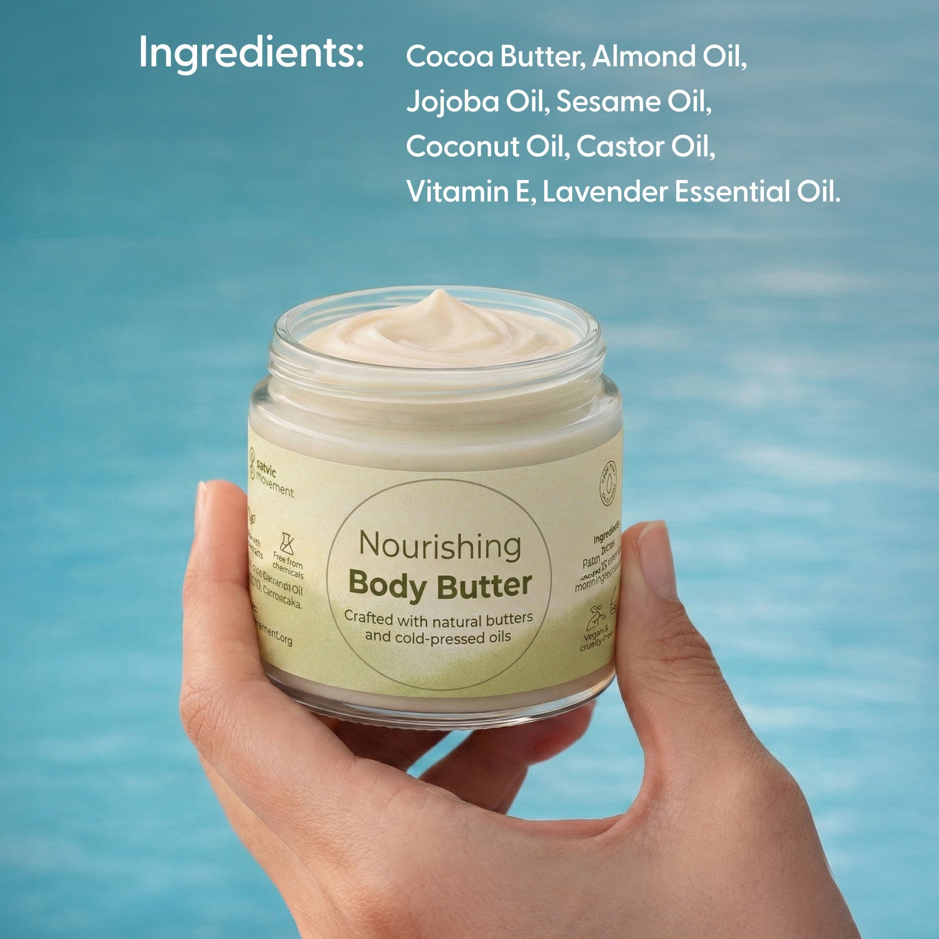 No fillers, no "fragrance," and no synthetic shortcuts. We’ve stripped away the chemicals found in commercial lotions to create a body butter made from plant-extracts. Using only cold-pressed oils and natural butters, this is hydration in its purest form.